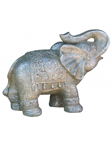 Elefante in resina, finiture anticate oro/argento L25xPR48xH40