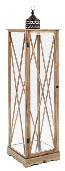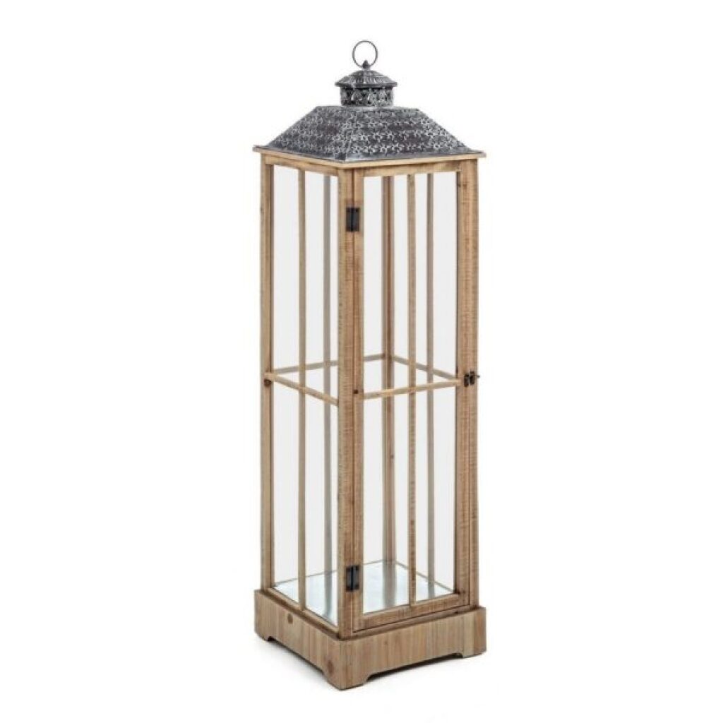 Lanterna modello Bucarest in legno d’abete, ferro battuto verniciato a polvere epossidica e vetro