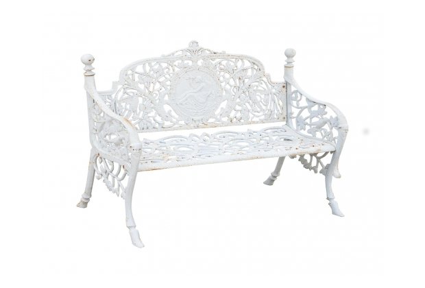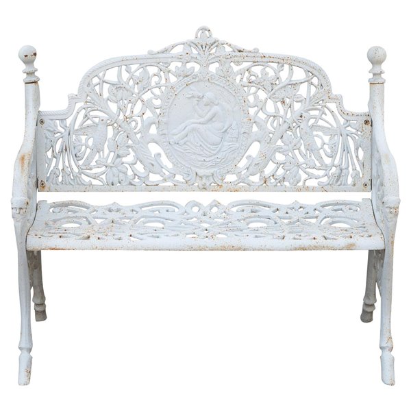 Panchina stile Liberty in ghisa finitura bianca antico 105x43x90 cm