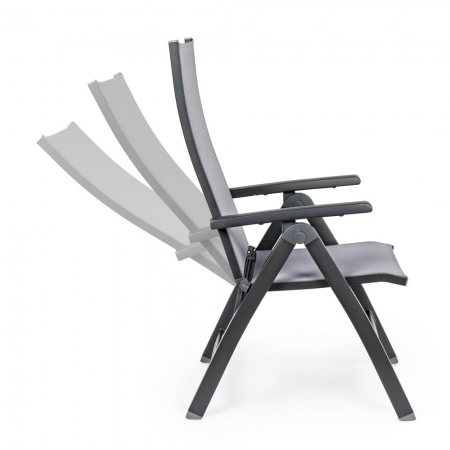 Poltrona reclinabile 5 posizioni, struttura in alluminio, seduta e schienale in textilene