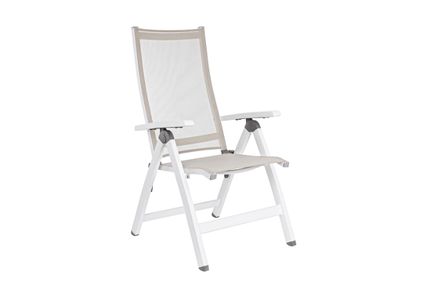 Poltrona reclinabile 5 posizioni, struttura in alluminio, seduta e schienale in textilene