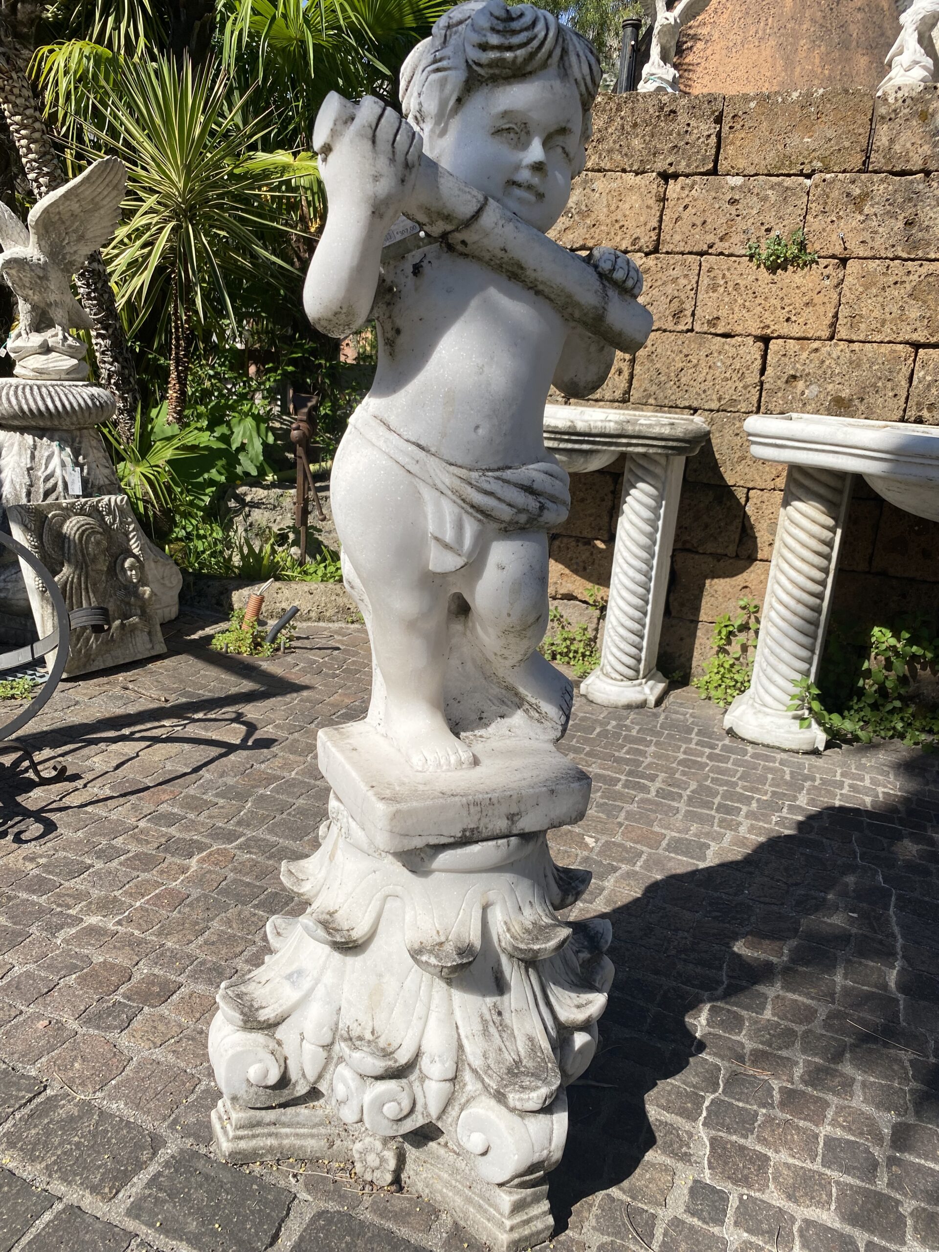 Putto in marmo con flauto h cm 80 base cm 24×25