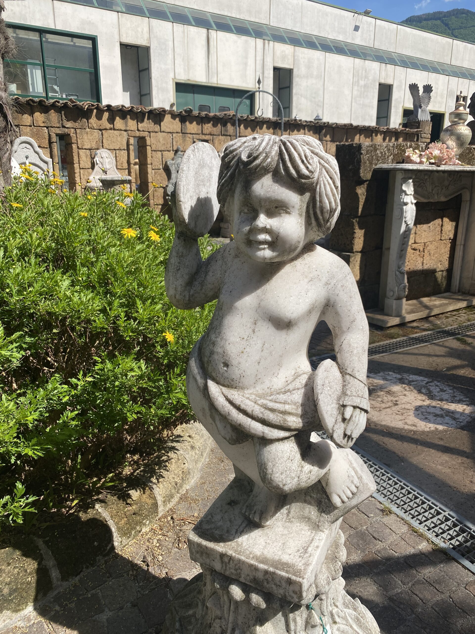 Putto in marmo con piatti h cm 80 base cm 24×25