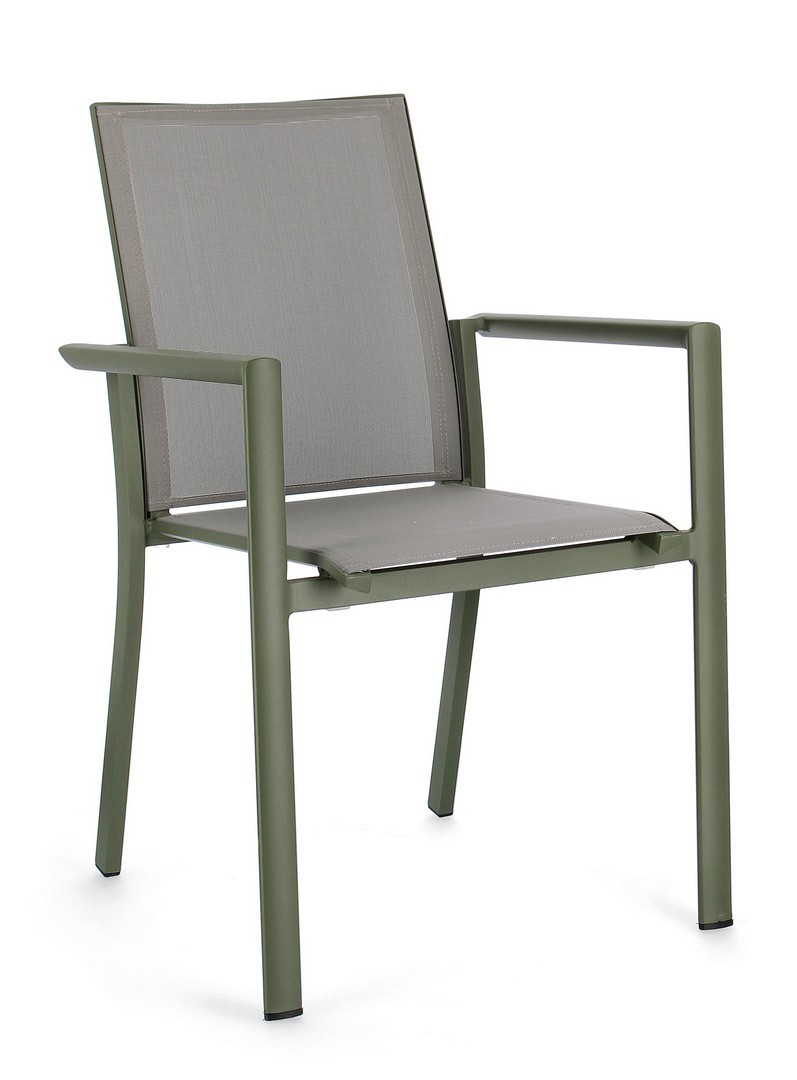 La seduta e lo schienale sono in textilene 1×1. impilabile.