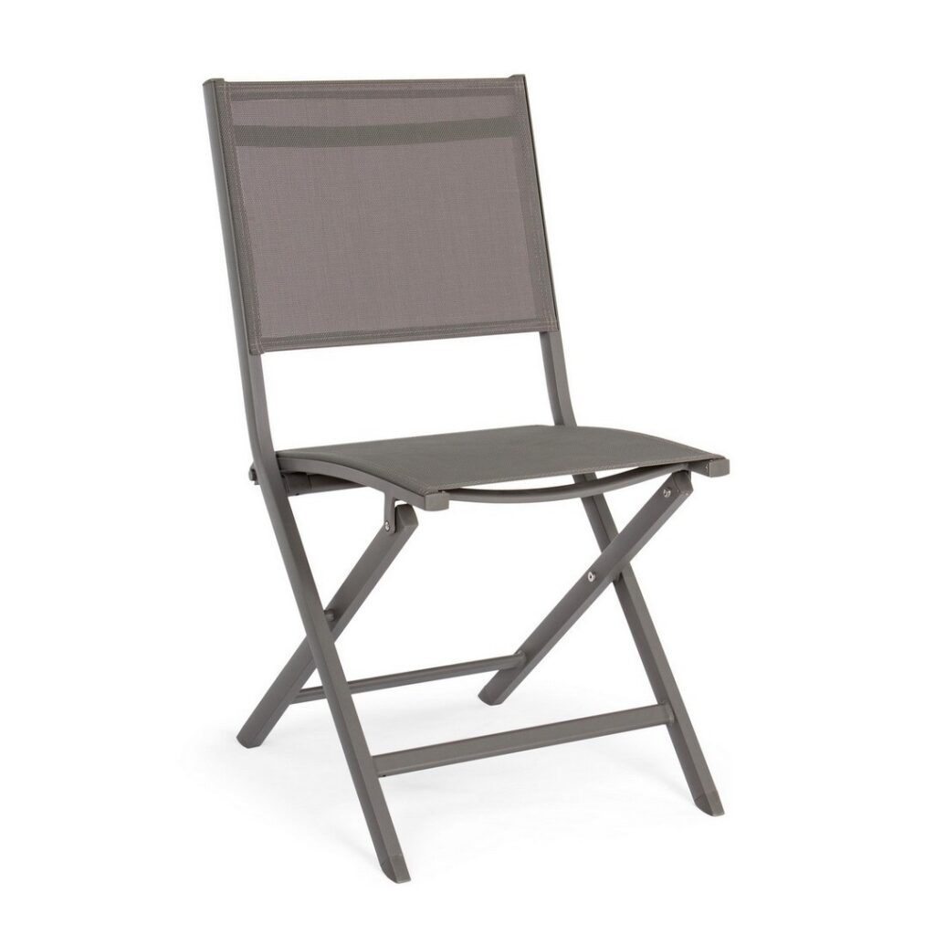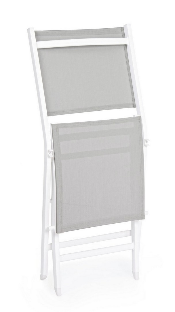 Sedia pieghevole, struttura in alluminio verniciato a polvere (poliestere), seduta e schienale in textilene. Misure 47a – 57b – 88h